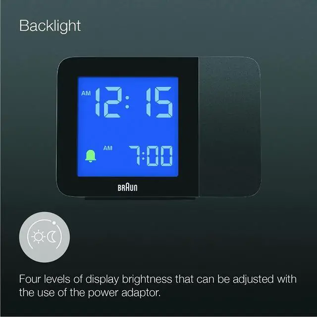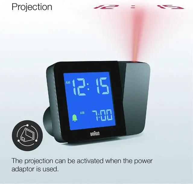 Power adaptor: This clock does not require a power adaptor to operate the display, however, using a power adaptor will allow the backlight to stay on permanently and enable the projection feature to operate. A power adaptor is INCLUDED.