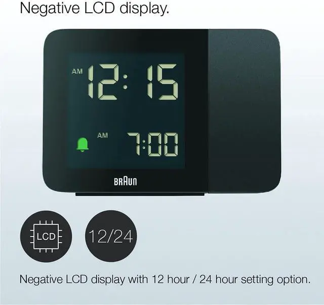 Negative LCD display with 12 hour / 24 hour setting option. *the digital display may vary in contrast depending on room lighting. The backlight can stay on permanently if used with the power adaptor which is INCLUDED. There are four customisable levels of display brightness.