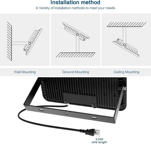 & -: Simplified plug in outdoor flood light installation! Includes a heavy-duty UL-listed plug and wiring for direct connection (screws for bracket mounting not included). The adjustable heavy-duty metal bracket offers flexible 180° angle positioning on walls, ceilings, or ground surfaces
