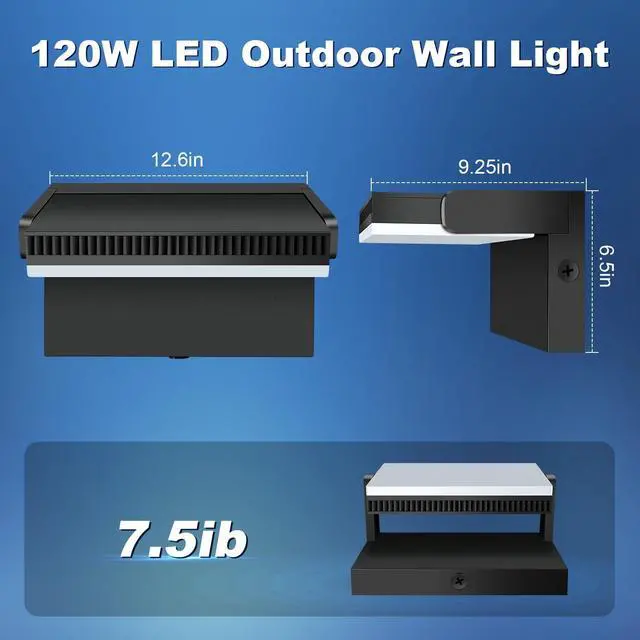 Durable and stable; 120 Watts LED wall pack light, 5000 K daylight, With a life span of up to 50000 hours, it far exceeds that of traditional bulbs, which means you will enjoy a stable and lasting lighting effect for a long time.