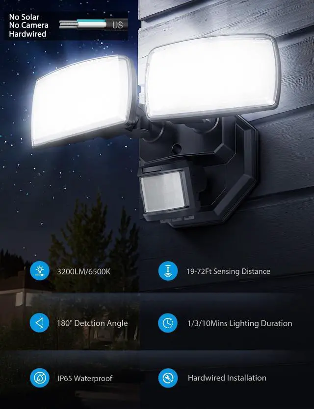 Easy Installation: Designed for simple setup, these exterior motion sensor lights for house can be easily wired and installed, providing immediate functionality and reliable performance.
