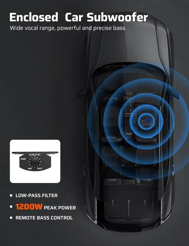 Bass Level Controller The included wireless remote with infinitely adjustable bass tuning allows precise low-frequency control without altering volume levels a key feature of premium car subwoofer amp combos. Enjoy perfectly balanced bass at any volume, ideal for under seat subwoofers with amp installations. This system creates immersive in-car acoustics that outperform standard car audio setups, delivering cinematic sound quality for music lovers.