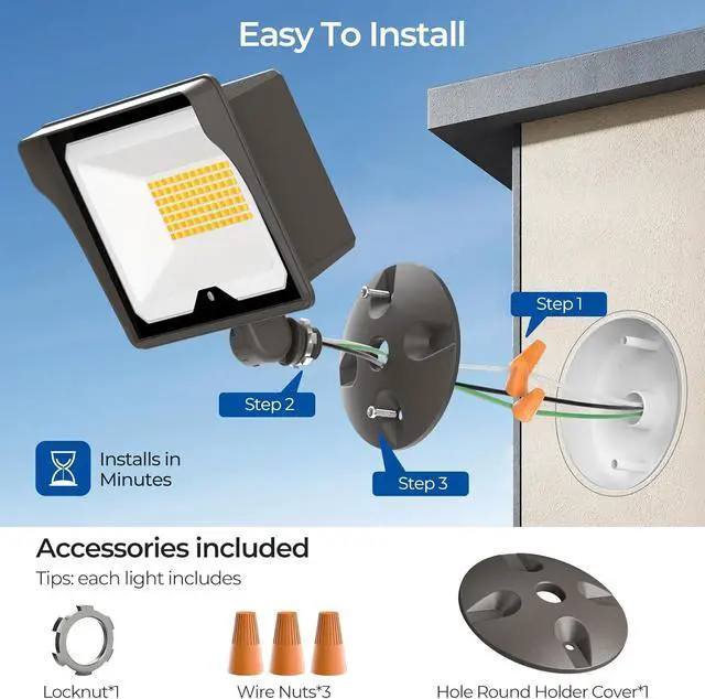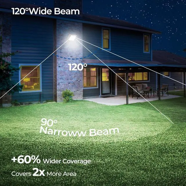 Wide ApplicationsEngineered with superior heat dissipation to minimize light decay ( <5%) and extend lifespan to 50,000 hours, this 55W outside flood light delivers powerful, wide-angle illumination. Ideal for driveways, patios, warehouses, workshops, barns, yards,billboards, and other outdoor areasrain or shine.