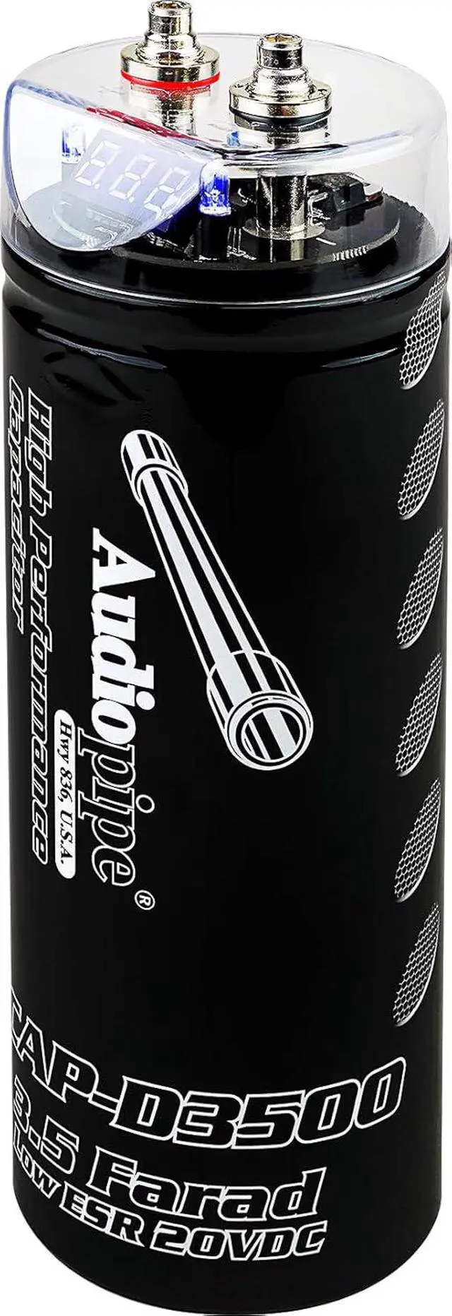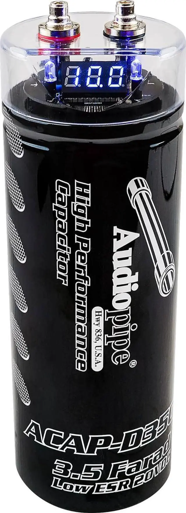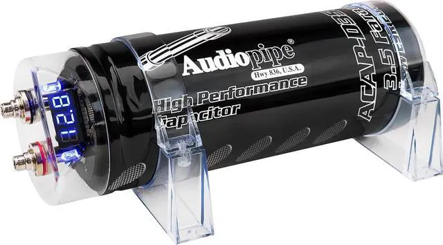 Buffer your amplifier's power source with the ACAP Farad Digital Car Audio Capacitor. This power cap will store temporary power and discharge it to stabilize voltage to the amplifier, giving you more consistent power to your subs or speakers. It features a low level input voltage of 20 volts and a high level input voltage of 24 volts. Also included is a digital display with a status indicator with a black finish. Make your system operate more efficiently and powerfully with the Digital Car Audio Capacitor.