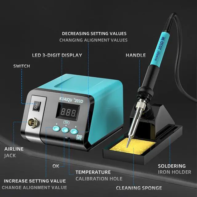 Plug-in Heating Core and Separated Design: The soldering iron's heating core is made of ceramic material, ensuring fast heating and stable temperature. The included independent soldering iron stand allows you to place it freely and organize your workspace according to your preferences.