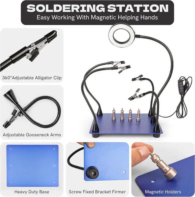 BROAD PROJECT SUPPORT: Ideal for electronics repair, jewelry making, and hobbyist work. Reliable helping hands soldering tool supports various soldering kit projects and component assembly.