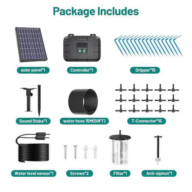 Easy Installation: The design of separating the solar panel and the controller makes it easier to install. All accessories are included in the package, and it can be used after quick assembly. Please install the anti-siphon device according to the user manual and install the controller above the water surface