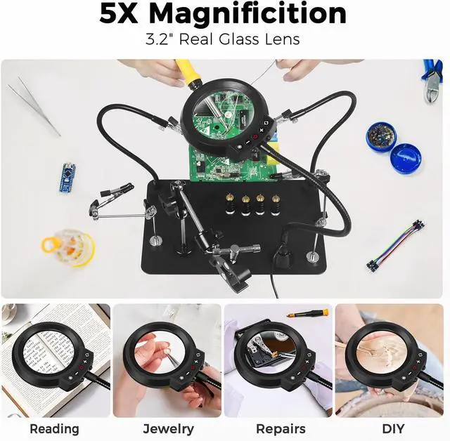 Customizable Light for Precision SolderingAdjust between 50 lighting modes (4500K warm to 6200K cool) for clear, shadow-free visibility. Perfect for soldering PCBs, repairing electronics, or detailed DIY workday or night.