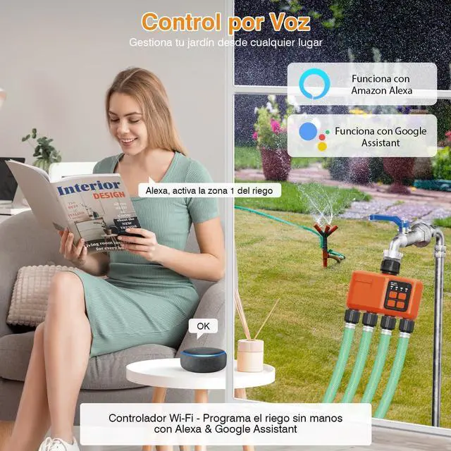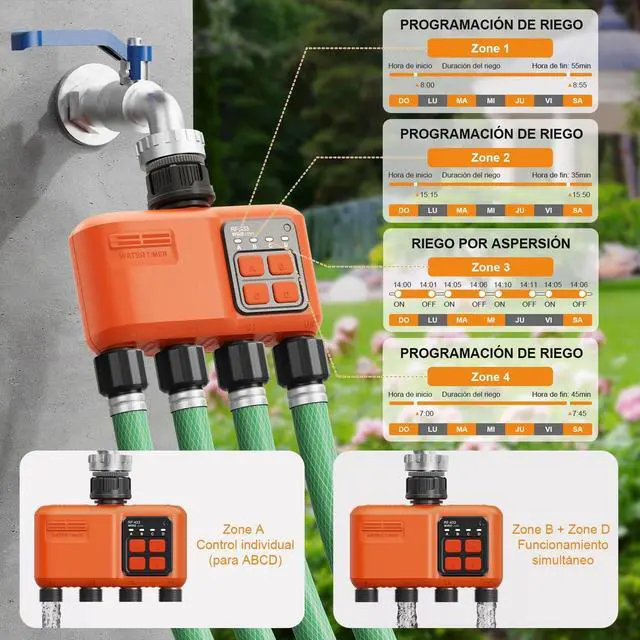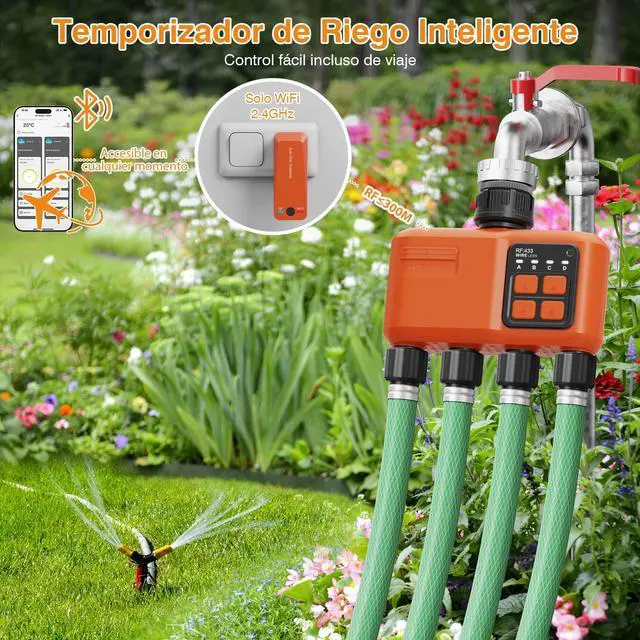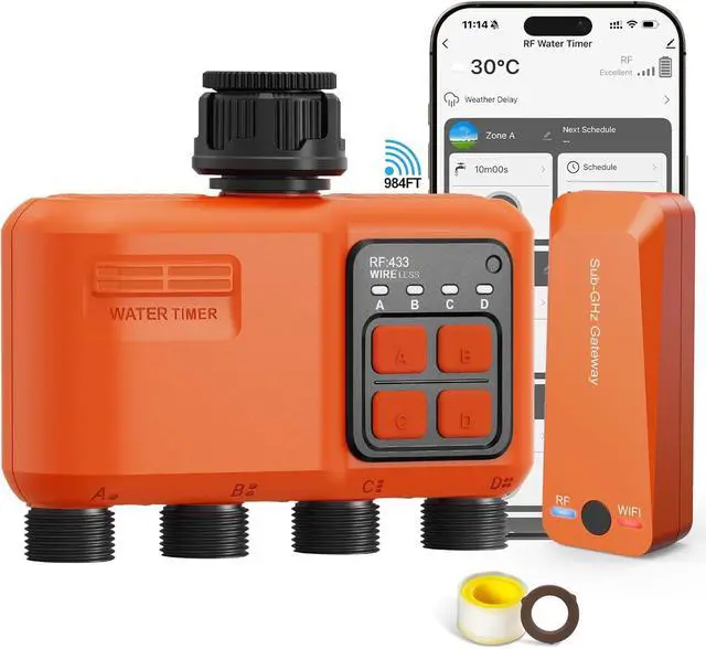 Custom Watering System: Address different watering needs effortlessly with this WiFi sprinkler controller's dual-zone functionality. Program individual schedules for each zone in your garden watering system, customizing start times, duration (1 minute to 24 hours) and frequency. The sprinkler timer 4 zone design ensures perfect coverage for lawns, flower beds and vegetable patches