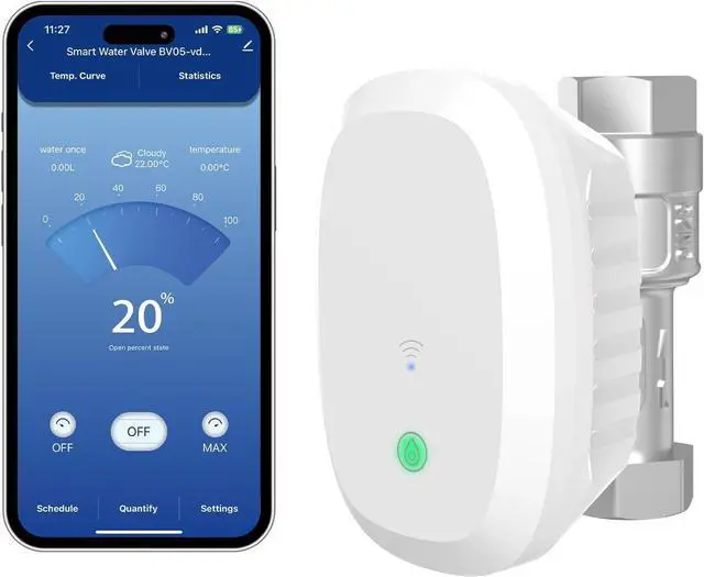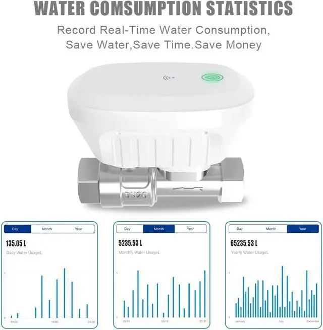 Smart Water Shutoff Valve: Once connected to the internet, the water valve controller allows you to schedule opening and closing times to help save water. The power supply operates on a USB DC 5V with a current of less than 2A.