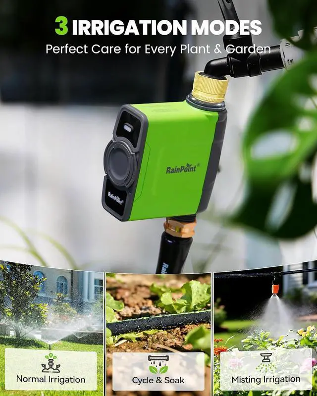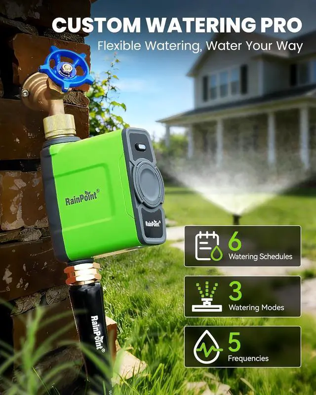 Weather-Based WateringThe watering schedule can be set according to local weather data, such as weather, soil moisture, and temperature, and the WiFi water timer will automatically execute. The WiFi water timer will delay watering by 1-30 days during rainy days and increase watering during droughts, ensuring your plants never get over-watered or under-watered. The seasonal adjustment feature automatically adjusts watering duration monthly based on a percentage you set (10%-200%), eliminating the need for you to repeatedly adjust your schedule