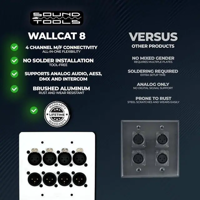 WALL PLATE SOLDERLESS DESIGN: No soldering needed, making setup faster and more efficient. The unit includes stainless steel mounting screws for a secure, ready-to-use installation that saves time for both pros and DIY users.