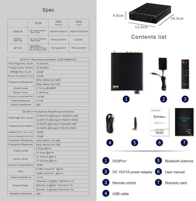 USB input: The DX3Pro+ serves as an external high-performance DAC for any device that supports OTG external sound cards, including iOS devices, Android devices, and media players, simply by connecting to its USB input