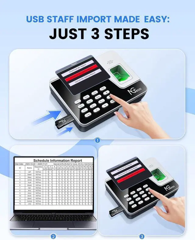 Data Protection Built-In: Engineered for reliability, the internal backup system preserves every single punch through unexpected power loss. Your employee records and timesheets remain 100% secure and retrievable, with zero reset hassle.