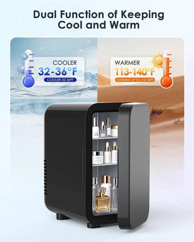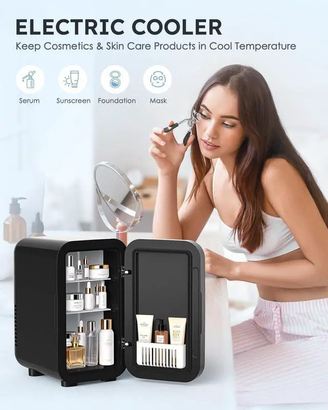 Ultra-Quiet Operation: Engineered with a semiconductor cooling chip and a high-quality brushless fan motor, this skincare mini fridge operates at an ultra-low 38 dB, making it quiet enough for environments like bedrooms and offices without disrupting sleep or focus