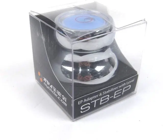 STB-EP is a multi-function 45 record adapter with three amazing functions. 1. 45 adaptor for large-hole 45 records 2. Bubble level for turntable levelling 3. Metal weight for stabilizing LPs on lightweight turntable platters (such as Pro-Ject Debut Carbon) The diameter of STB-EP has been designed and manufactured with an accuracy of microns. Its snug fit minimizes any eccentricities in the record for accurate playback and no skipping under aggressive DJ use. Being made of heavy-weight metal, if offers greater stability and vibration resistance than a plastic 45 adapter. With ergonomic design, and a beautiful chrome finish, this easily removable adaptor fits almost any turntable on the market.