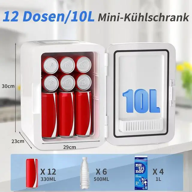 Car Power Supply: The 10L mini fridge is equipped with two power cords (110V AC & 12V DC) for home and car use. You can use the regular power supply (120V) at home or use the car charger (12V) in the car for camping