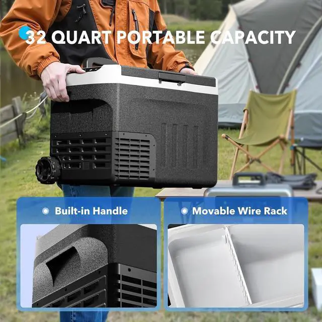 Wide Temp Range: Adjustable cooling from -4 to 68, perfect for chilling drinks or freezing meat. Easily switch between fridge and freezer modes to meet all your travel and camping needs.