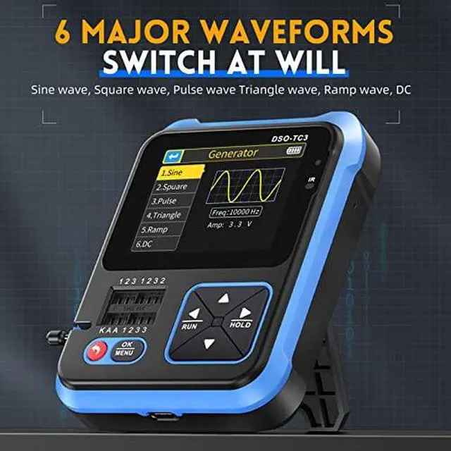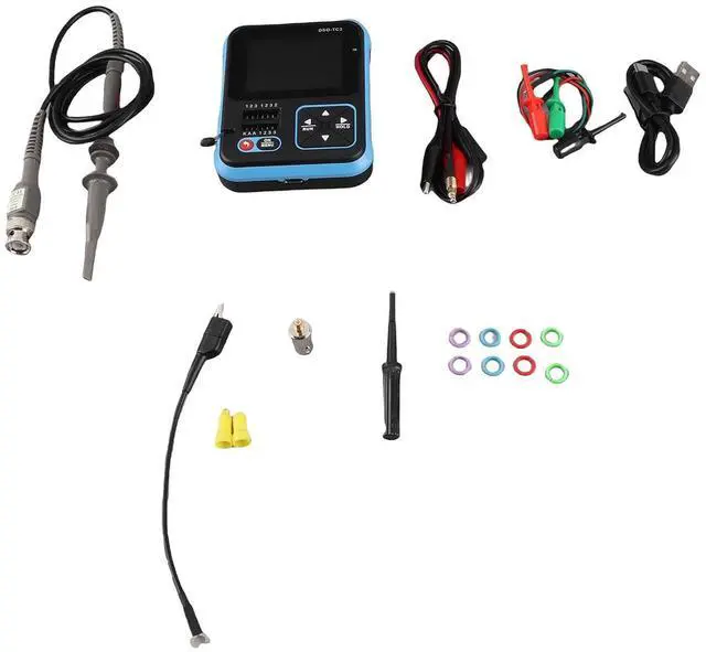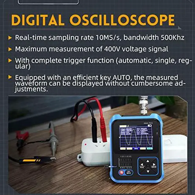 Screen: The oscilloscope is powered by a built in 1500 mA battery, which will be fully charged in 12 hours via a 5V 2A adapter and can operate for 4 hours (green indicator for completion/red indicator for charging). The digital handheld pocket oscilloscope and transistor tester is designed with a high resolution 2.4 inch screen with adjusting backlight. Better reading experience and easy to use.