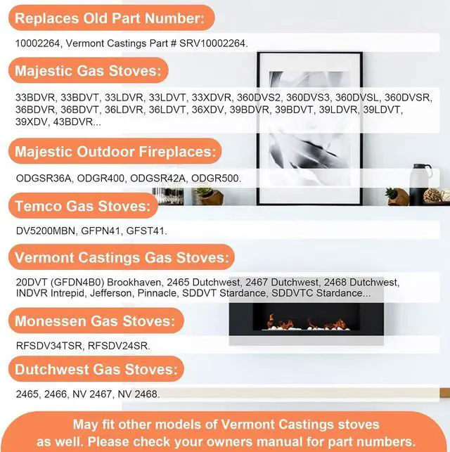 Fits Monessen Fireplace Parts Models: RFSDV34TSR, RFSDV24SR.