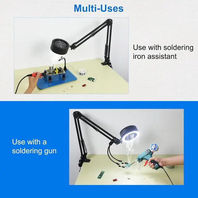 Adjustable Arms: The lamp head can be put 220 degrees up and down, and 360 degrees swivel. 13inches and 13inches extendable long arm and expanded up to 26 inches. Extended version of the arm can better meet the needs of your work range. And equipped 3 fixed knobs and 2 pair fixed springs help you adjust the lamp position smoothly without swaying left or right, neither sharp falling nor shaking