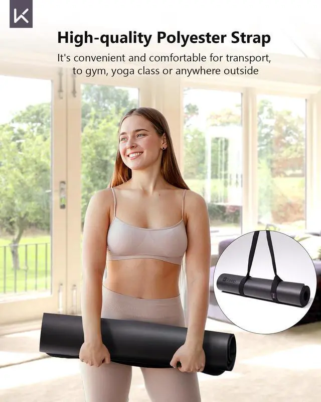 Ready for Action (Carry Strap Included) Every mat comes with a high-quality carrying strap. While this is a substantial, heavy-duty mat designed for your home gym or studio, the strap makes it manageable to transport when needed. Easy to roll up, store, and clean.