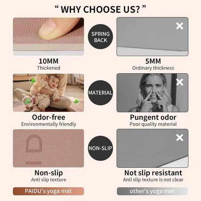 PROTABLE YOGA MAT WITH STRAP: Our thick yoga mat weighs just 1.45 kg, so you can simply roll it up and take it with you to the gym, office or home on our yoga mat strap. Also suitable for outdoor hiking and camping.