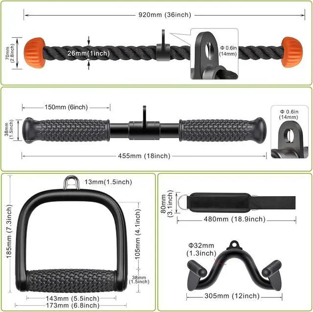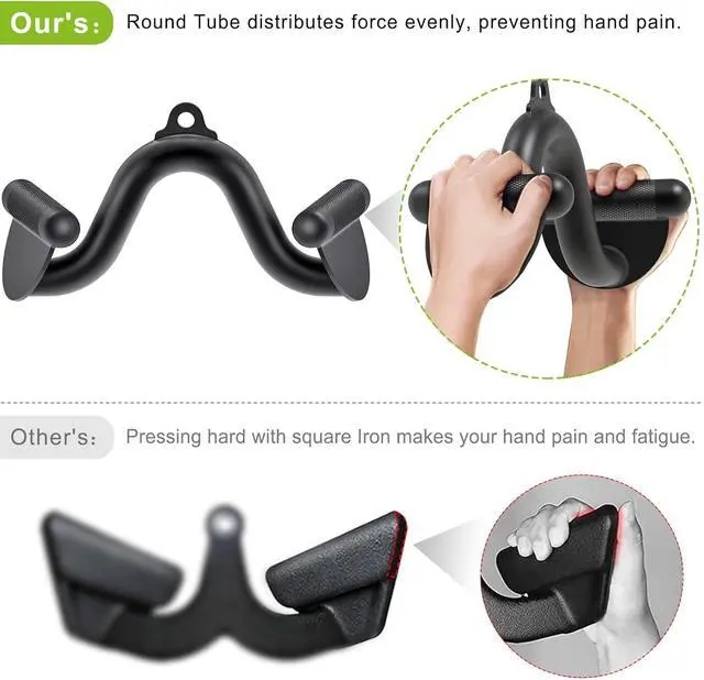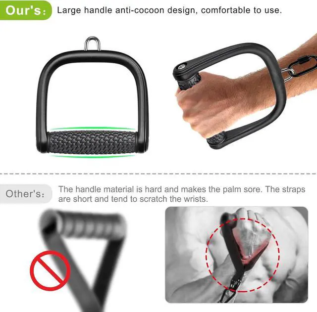 Versatile D HandlesThe D Handles are designed with non-slip soft rubber grips and high-quality aluminum bars for strength. They can be rotated 360 degrees, making them perfect for working out various muscle groups.