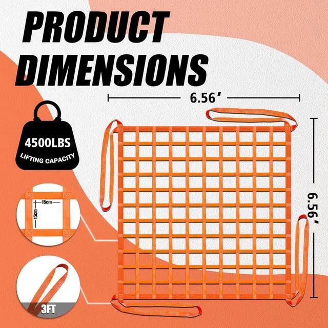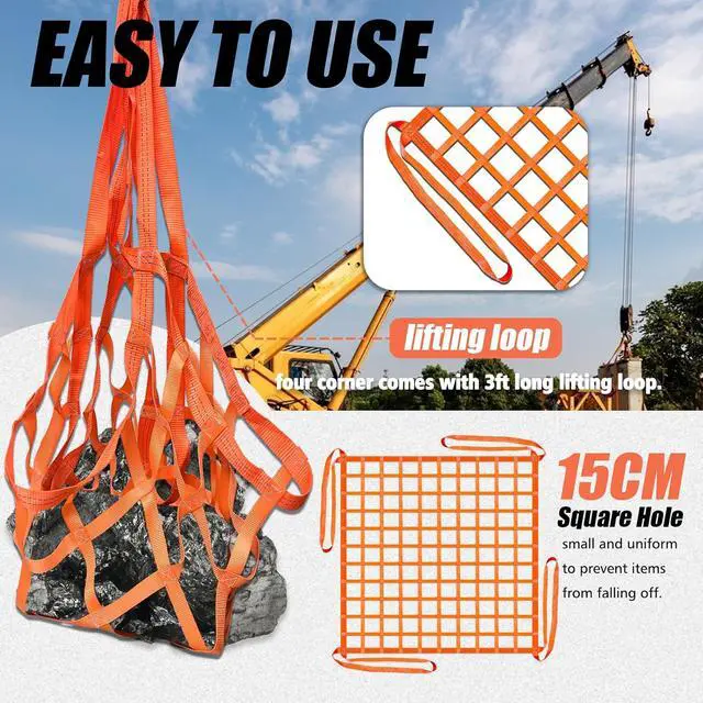 Safety: The mesh of the lifting net is 15cm, small and uniform to prevent items from falling off and ensure safety; Sling and the whole net made in one piece, multi-layer reinforcement and tightly stitched to make it have good wear resistance during transporting items.