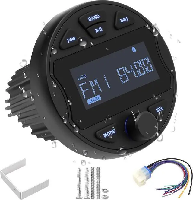 WATERPROOF DESIGNOur marine stereo receiver features an enclosed full touch screen, waterproof design and UV coated material to better withstand the marine environment, ensuring that you can use it normally in humid, strong winds and salty environments without worrying about seawater penetration. Perfect for boats, yachts, motorcycles, cars, UTVs, SUVs, RVs, golf, campers, RZRs, harvesters, trucks, bathrooms, kitchens and other outdoor and indoor installations
