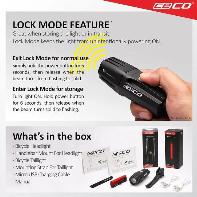 Headlight flashes to indicate when there's only 10 to 20 minutes of power left. Tail light flashes when powering on & off the light when charging is requiredUSB Rechargeable