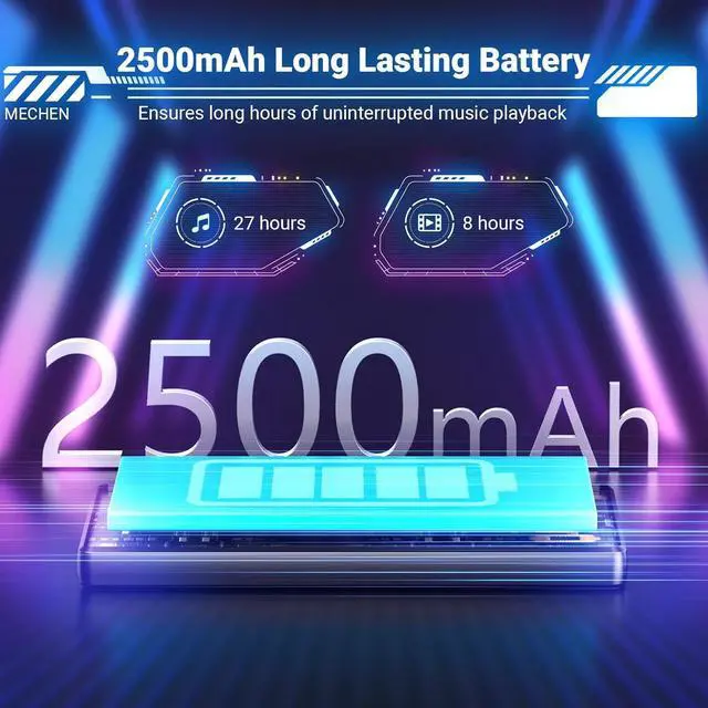 Worry-free battery life, music freedom Built-in 2500mAh high-capacity battery, up to 27 hours of continuous playback, from morning to night, music without power. Support USB-C interface, forward and reverse blind plug more convenient, faster and more stable charging.