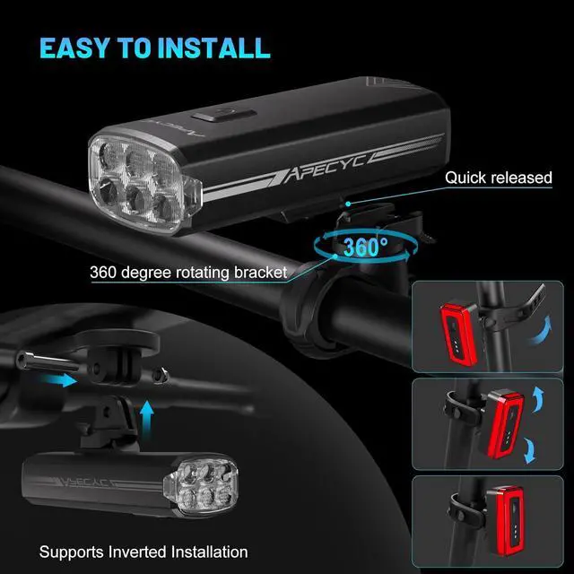 Easy to Install: No tools needed, just snaps on in seconds with silicone straps or quick-release brackets. For reversed bracket mounting, secure the bracket beneath your handlebar first, then click the light onto it
