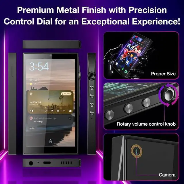 4.7" HD Display & Premium DesignThis Bluetooth Mp3 player boasts a 4.7" HD screen (1280x720) with PowerVR GE8320 GPU, delivering vivid colors and crisp visuals. The premium metal body features sleek beveled edges and a precision volume wheel. As an excellent Mp4 player, it's perfect for showcasing album art, videos, and games. Compact yet impressive, it offers an enhanced viewing experience for all your multimedia needs.