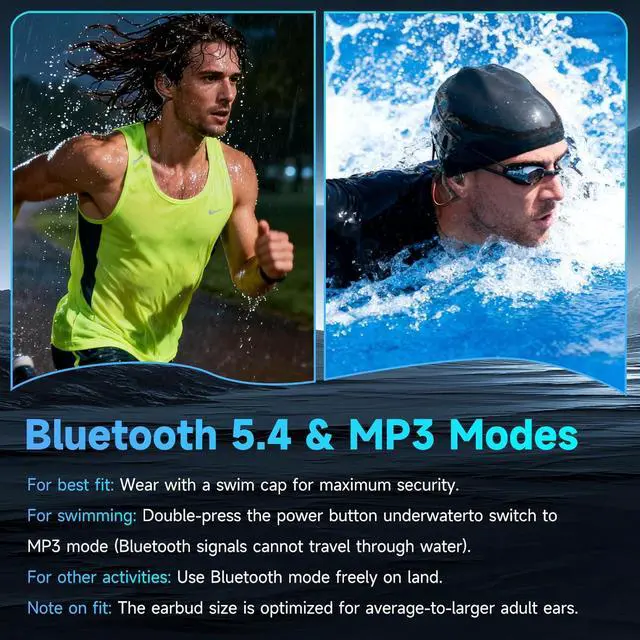 Battery Built for Long Swim Days: Don't let a dead battery kill your vibe! A quick charge fuels your workout with up to 10 hours of Bluetooth playback or 8 hours of continuous underwater MP3 jams. From your first warm-up lap to your final cool-down, your soundtrack stays pumping. (Use