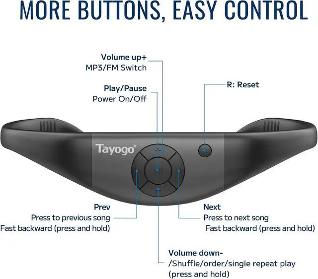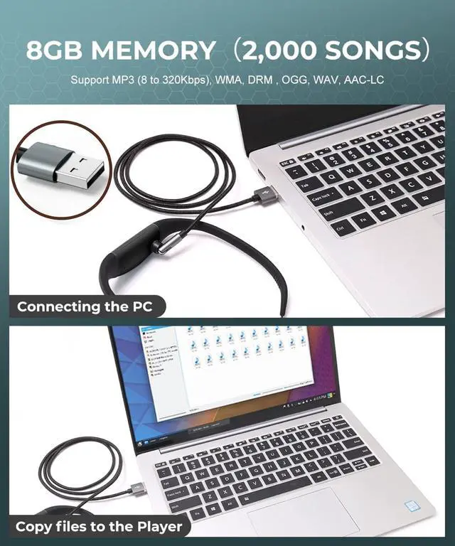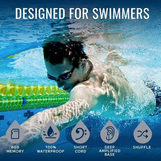 Integrated Design & 8GB Internal MemoryOur underwater mp3 player features an integrated design for maximum convenience and reliability. With built-in 8GB of memory, it can store up to 2, 000 songs, allowing you to enjoy your music while swimming without worrying about damage or computer identification issues. It's compatible with iTunes and audiobook files that you download, and supports MP3, WMA, OGG, APE, FLAC, WAV, AAC-LC, m4a formats.