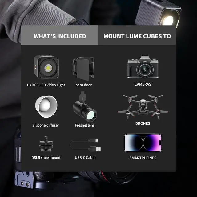 Elevate your contentThe COB video light comes with diffusers, barn doors, 6 gobo filters, and a Fresnel lens all essentials for control and soften the light, reducing harsh shadows and providing a more professional look to videos/photography.