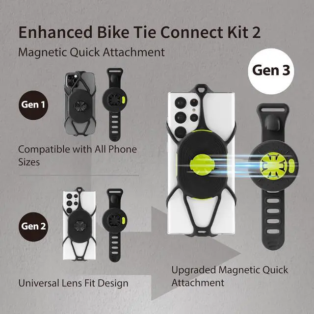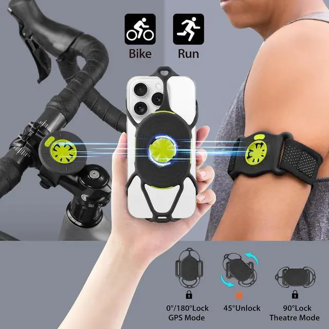 Bone Run + Bike Tie Connect Kit 2 Magnetic, 2-in-1 Magnetic Running & Bike Phone Holder, Detachable & Rotatable 360° Sport Armband & Phone Mount for Most Smartphones (2-in-1 Magnetic Connection Kit)