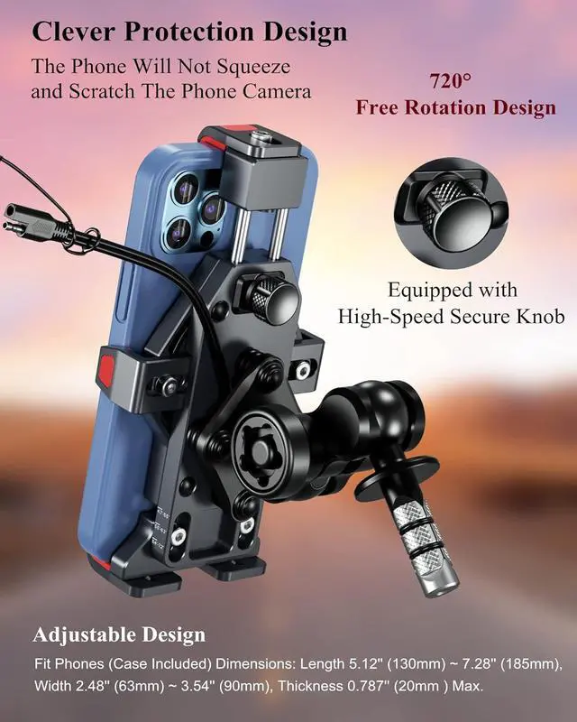 Shockproof Protection: The motorcycle phone holder also built-in with soft silicone that keep your phone from scratches and vibration. Phone mount & phone camera features a non-contact designed to keep the phone camera from being squeezed and scratched while riding