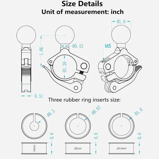 This 1 inch ball handlebar mount compatible with RAM Mounts & any B size 1'' ball double socket arms. Work for other devices with 1 inch swivel ball mounting pattern