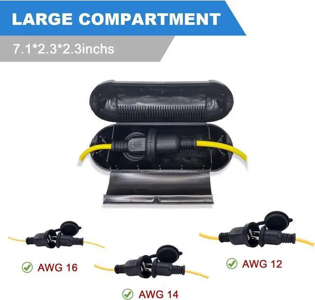 Easy to use - You can place the yellow work lights connection into the safety seal enclosure and clip the cord with the clamps. Ideal for a wide range of outdoor & indoor applications including holiday lighting, landscape decorations, construction site, tunneling, carport, renovation, attic, family reunions, shipping container, garage and more.