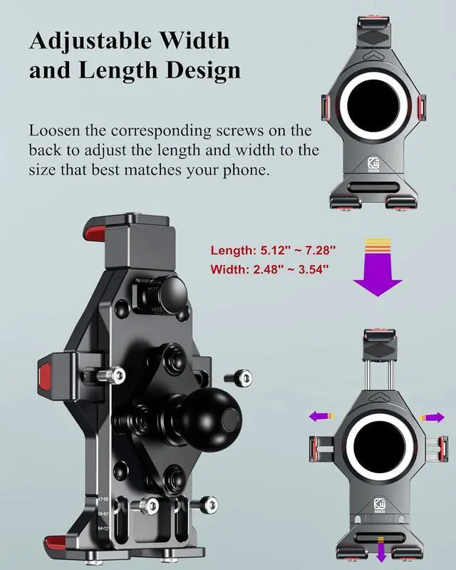Wide Compatibility: With an adjustable design, the body size of the motorcycle phone holder can be adjusted according to the size of your phone. This Motorcycle Phone Mount Holds Phones (Case