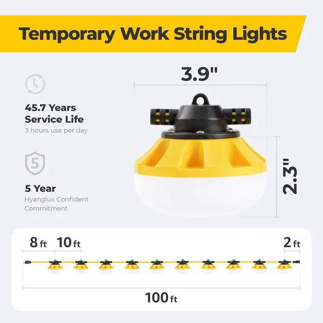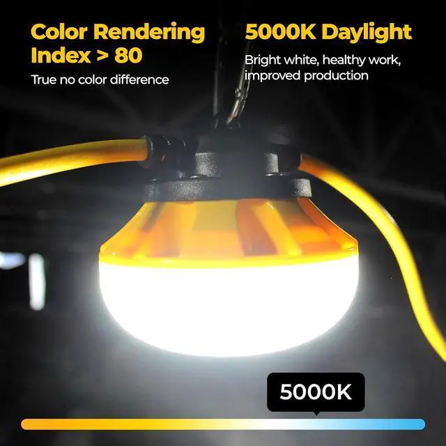 Wide Applicability: This work light is equipped with a climbing hook, plug and play, and can be hung directly on a rope or anywhere. Simple and portable. Can meet various lighting needs, such as construction sites, renovation, walkways, patio, mine cave, parking lots, docks, warehouses, construction sites, factories, workshops, mines, pits, attics, basements, storage areas, stairwells and other crawl spaces And any place that needs lighting indoors and outdoors