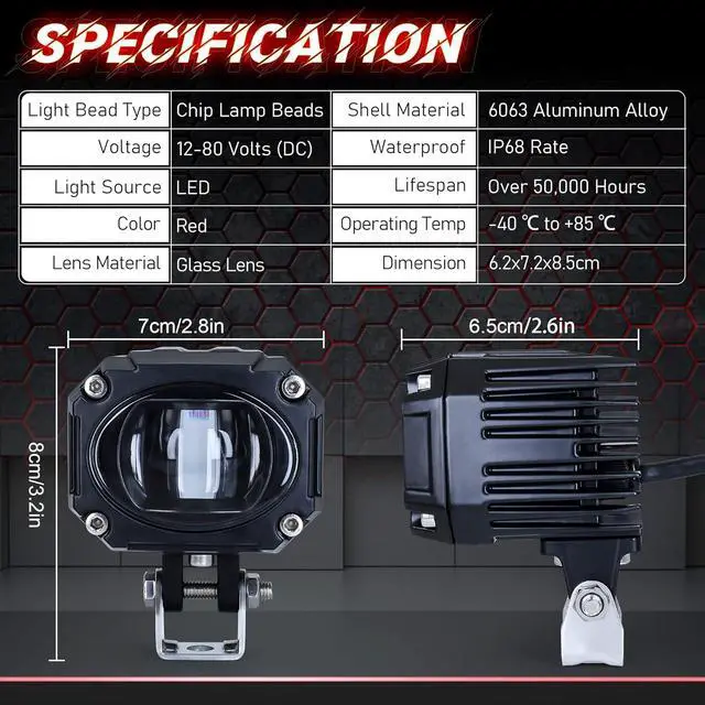 INSTALLATION AND APPLICATION - The double screw mounting design ensures that your light is mounted securely. You can freely adjust the mounting angle of the light. 10W DC10-80V provides efficient lighting and improves safety. Application for forklift and warehouse mobile equipment.
