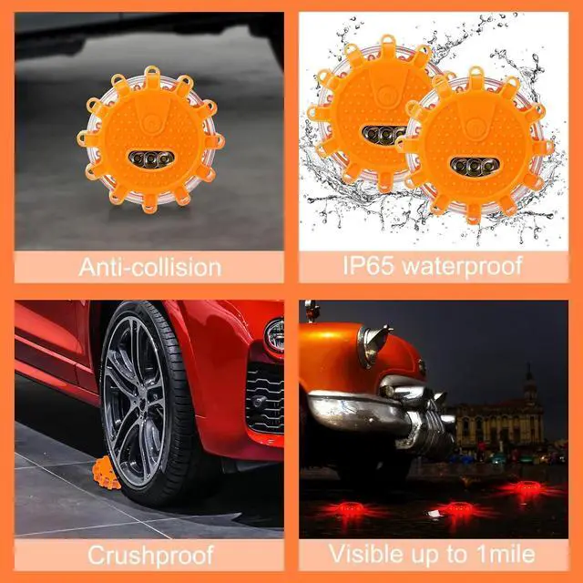 Magnetized Base: these safety flare flashing warning lights contain magnet and a plastic folding hook; You can place them on the ground, stick them to your car or hang them anywhere you want; Our car emergency lights are the ideal presents