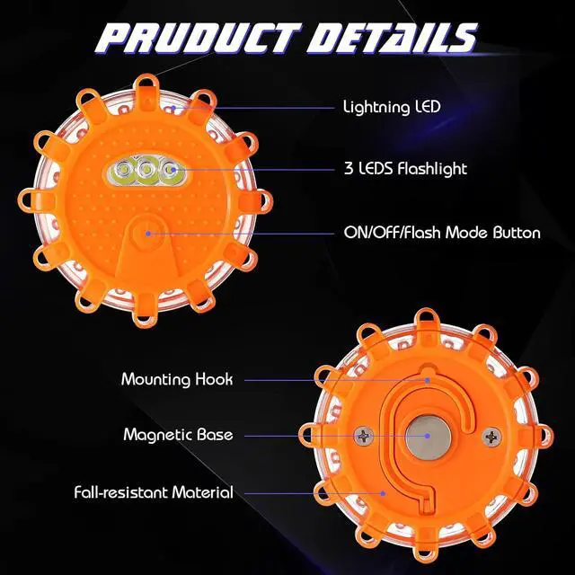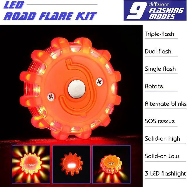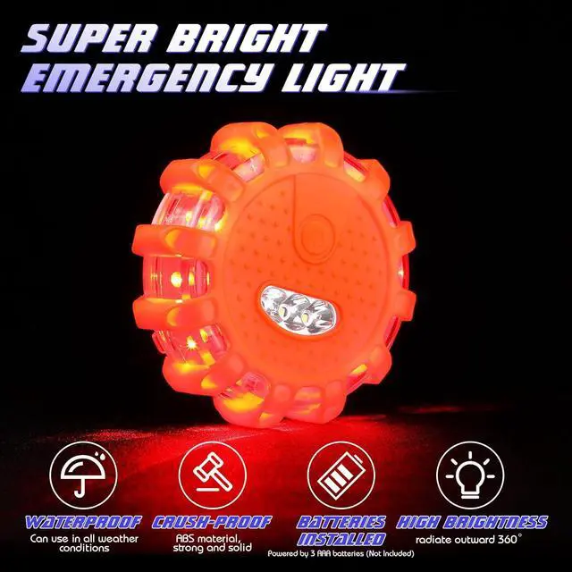 Practical Functions: the LED emergency road flares are nice for emergency vehicles, such as ambulances, broken cars, also suitable for rescue operation signs, traffic control, warning lights, emergency lighting, outdoor lighting, camping, hiking and more