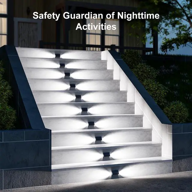 0 Electric Bill & 100% Solar Power: Our solar porch step lights operate entirely on solar power, eliminating the need for any wiring and saving you money on electricity bills. By harnessing solar energy, they help reduce your carbon footprint and contribute to environmental sustainability. Enjoy the benefits of renewable energy without the hassle of traditional power sources.