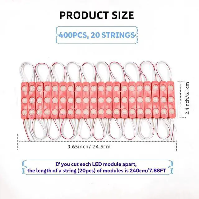 400 Pcs LED Module PINK light 1.5W LED Storefront Lights 12V DC LED Module Light with Tape Adhesive Backside for Inflatables Decorative Christmas Letter Advertising Signs