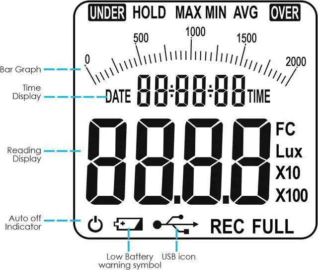 Resolution: 1 Lux / 0.1 Fc