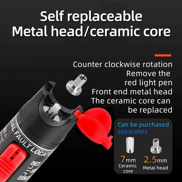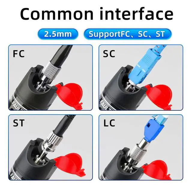 Application 2.5 mm Universal Connector - the connector of the detector is compatibly designed for ST, SC, FC, LC interferes both in circle and square shape of different fiber optic cables. It can be used in telecommunication/CATV engineering and maintenance, integrated wiring construction and maintenance, optical device production and research and other optical fiber engineering.